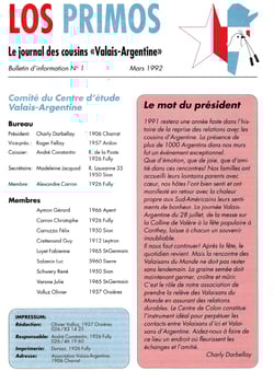 Nous vous invitons à parcourir les archives de notre Association à travers les 52 numéros de notre journal Los Primos "des cousins d'Argentine" depuis son premier numéro en 1992. Vous y découvrirez les nombreuses actions menées depuis 1989 pour maintenir vivante l'histoire qui nous lie. Que de magnifiques de magnifiques souvenirs !